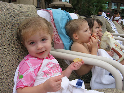 Kate loved the water even more than Lilly (if that is even possible). She loved splashing and crawling around. I would sit her on my lap and we would go round and round on the lazy river. She nearly fell asleep one time.